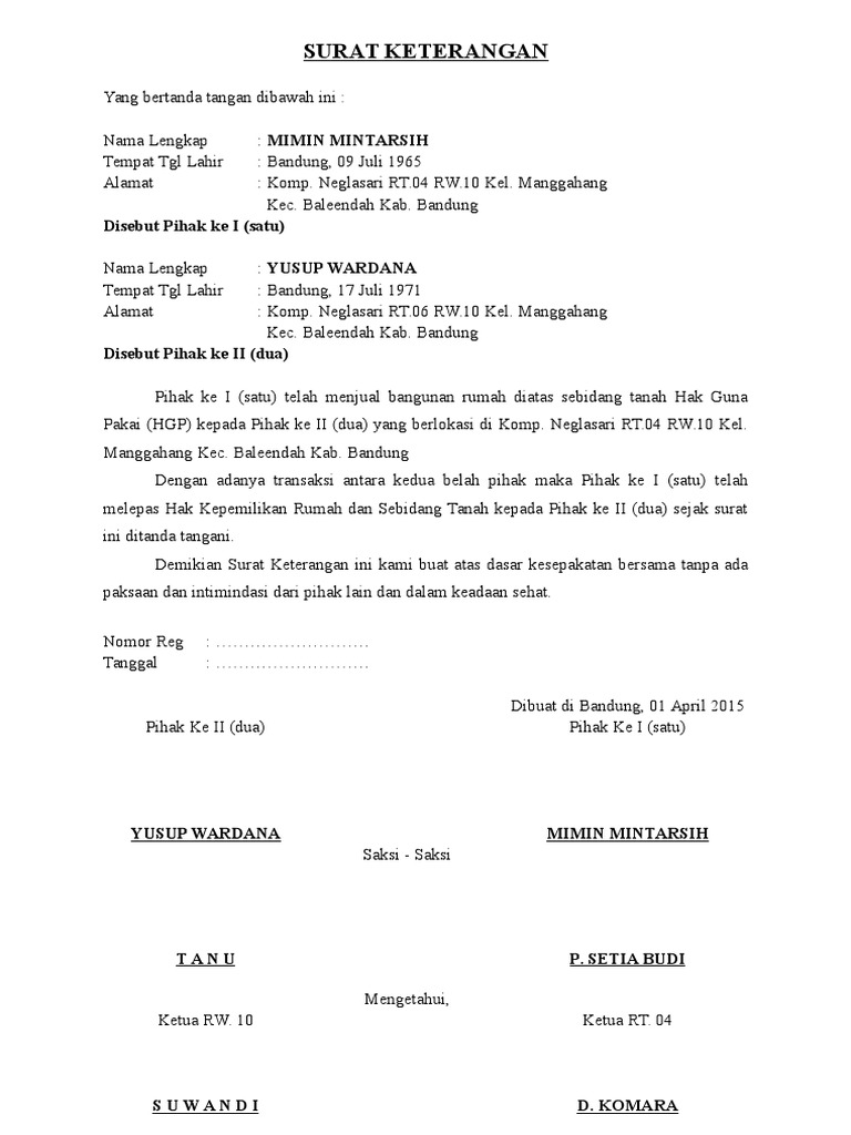 Namun ada kalanya pernyataan yang akan diberikan harus dengan menggunakan surat, baik itu menyatakan diri sendiri ataupun menyatakan tentang orang lain.